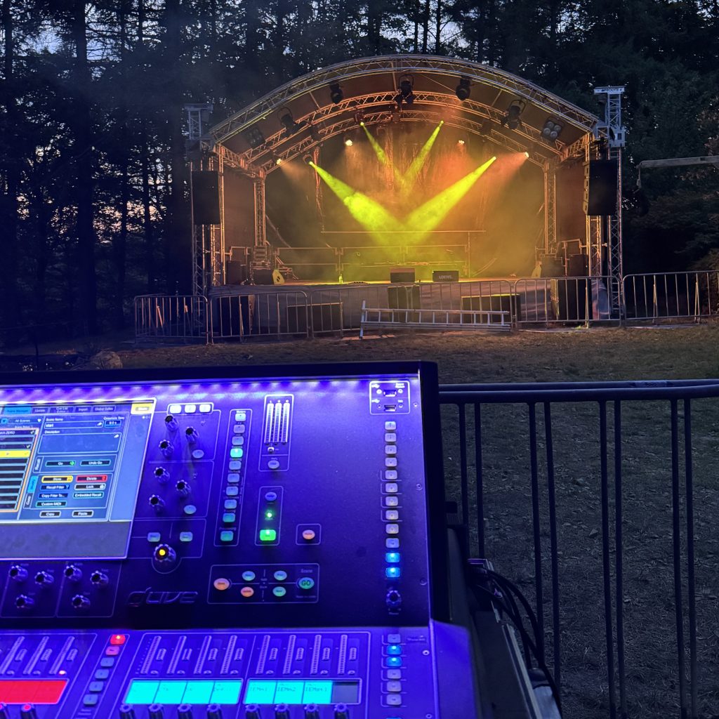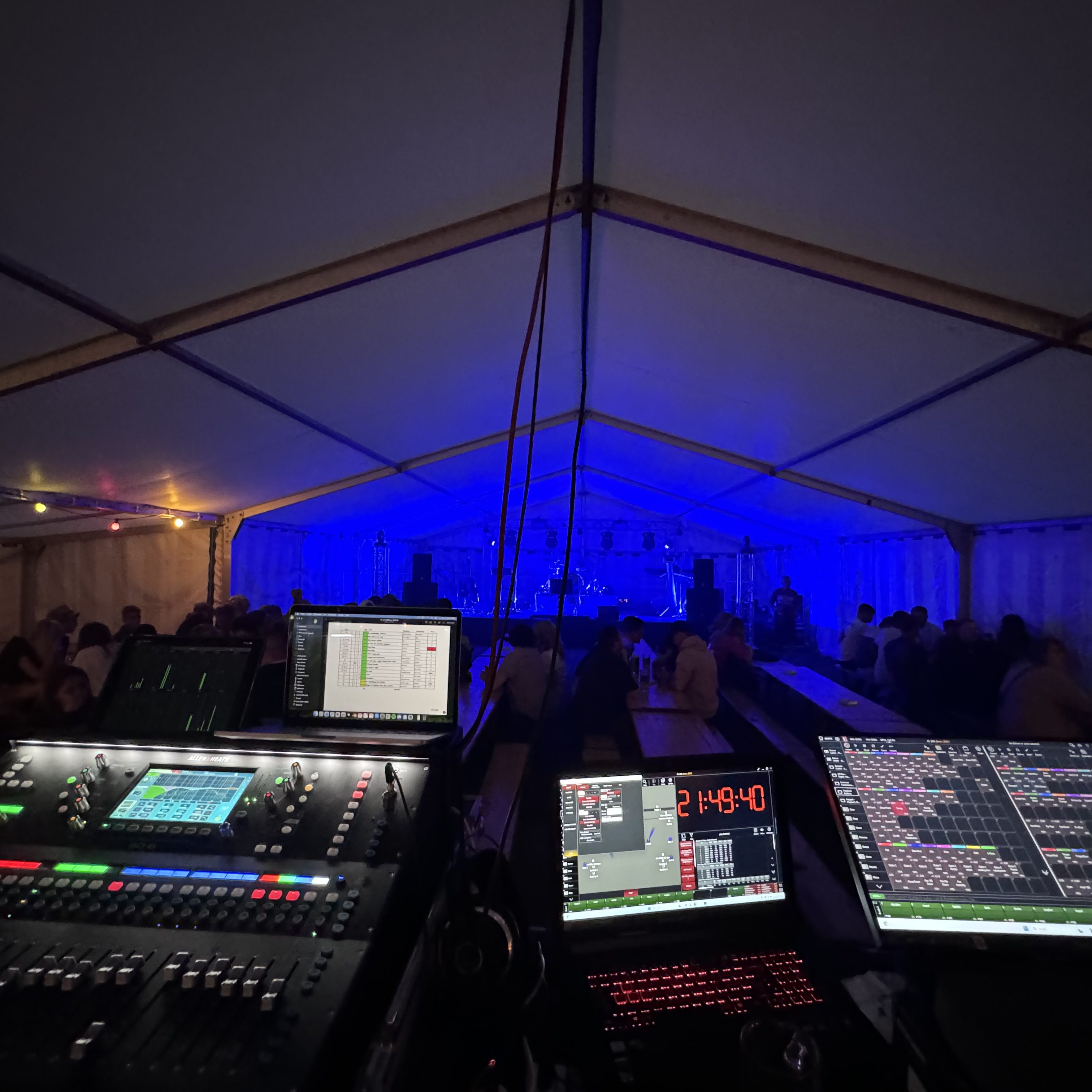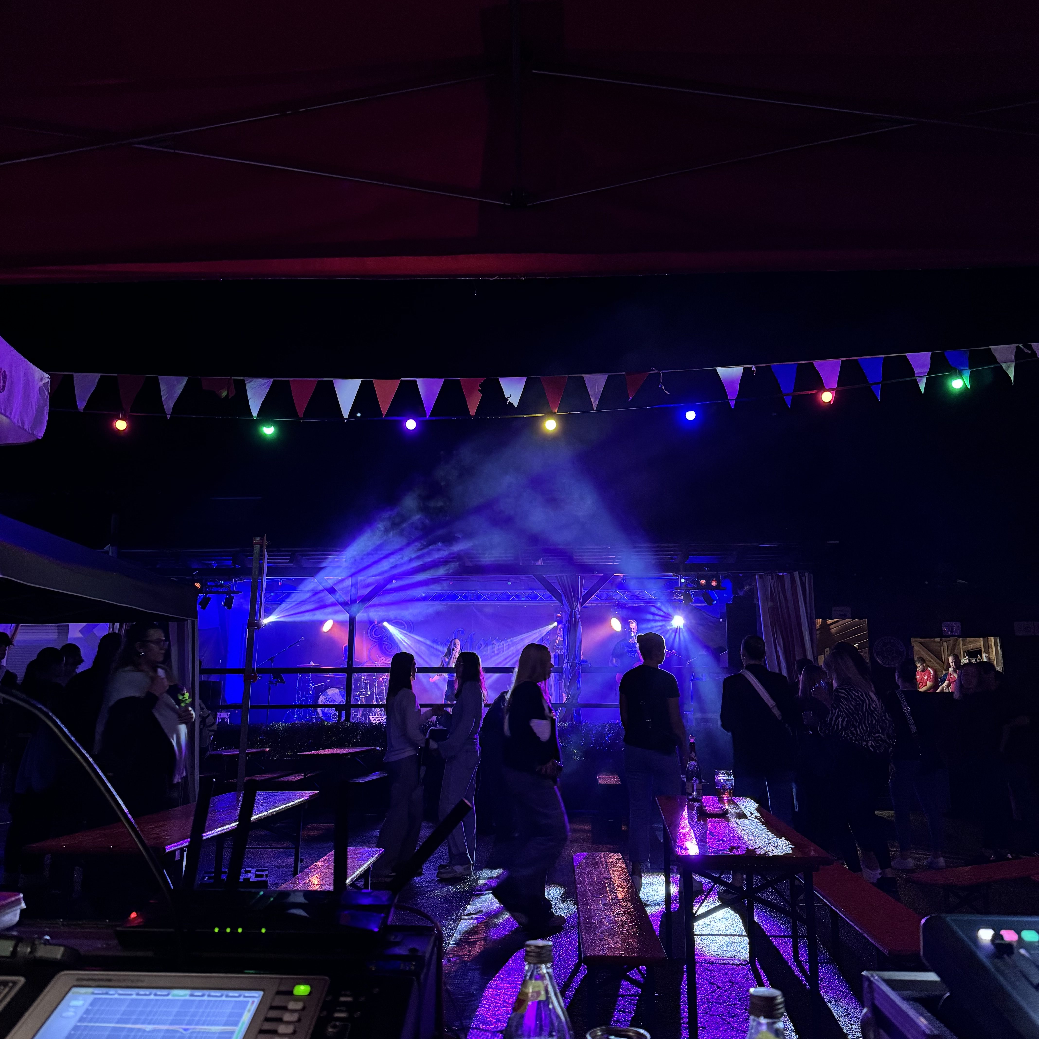 Planung und Umsetzung von Bühnenkonzepten, Bühnenbau, sowie Installation von Bühnenbeleuchtung und -effekten.